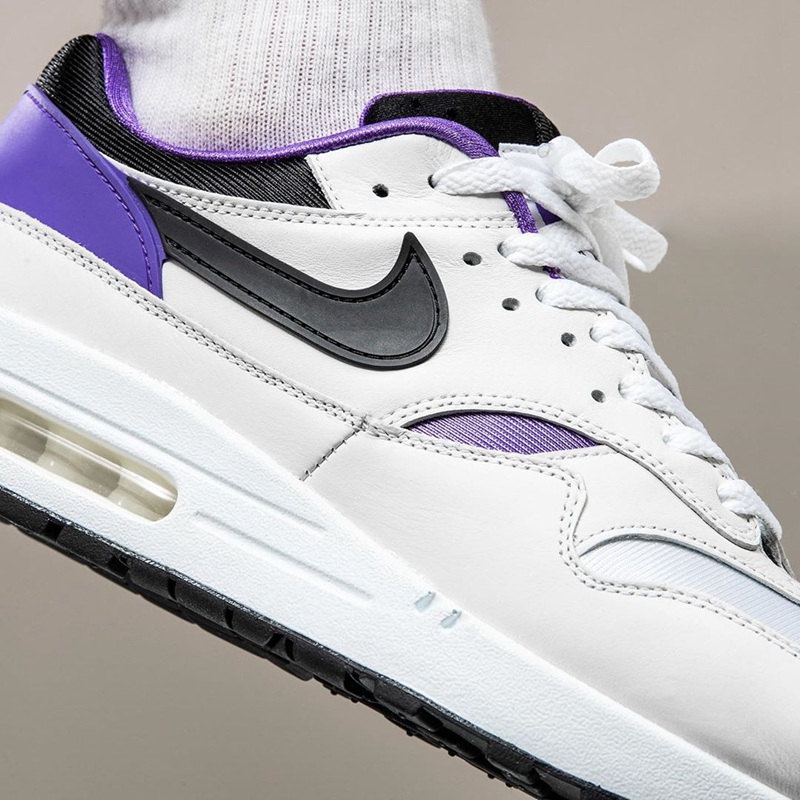 眼前这双 Air Max 1 DNA CH.1 “Purple Punch” 将 Nike 经典复古鞋 Air Huarache OG 的白、黑、紫三色注入鞋身。