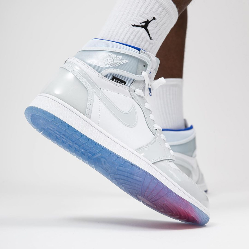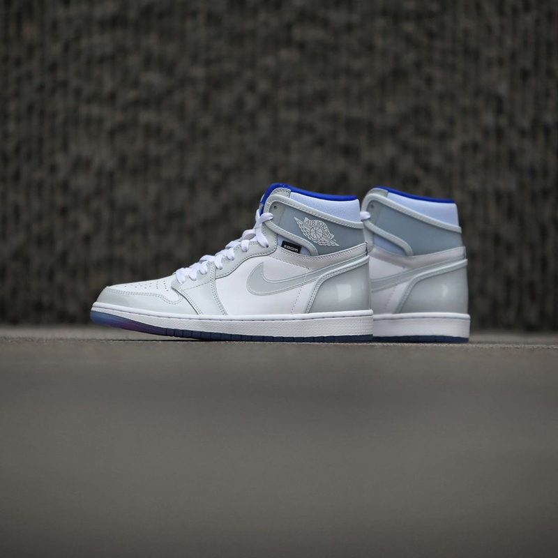 搭载 Zoom 气垫的 Air Jordan 1 R2T 版本第二款配色,因为灰白的鞋身主色调而被称为「小 Dior」,也因此收获了不小的关注度。