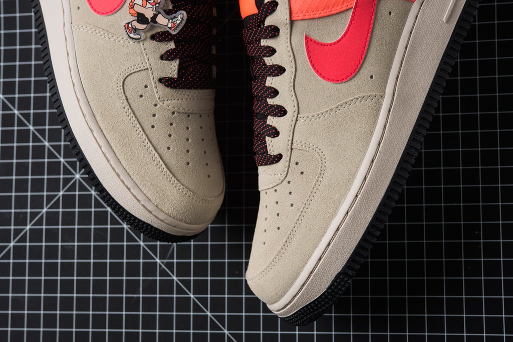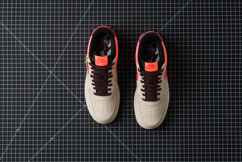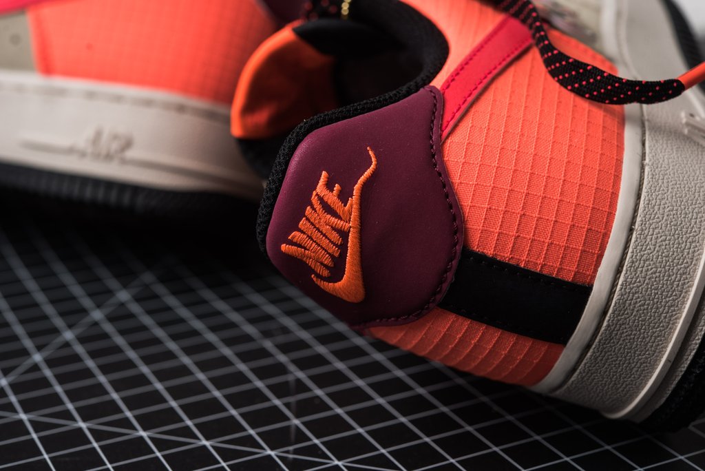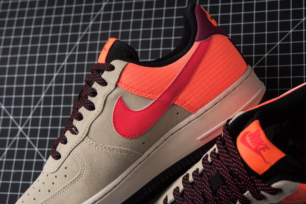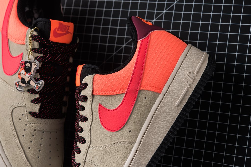 鞋身采用卡其色麂皮鞋头与橙红色抗撕裂尼龙织物共同打造,黑色内衬搭配荧光粉 Swoosh,高饱和度撞色带来满满的户外质感!