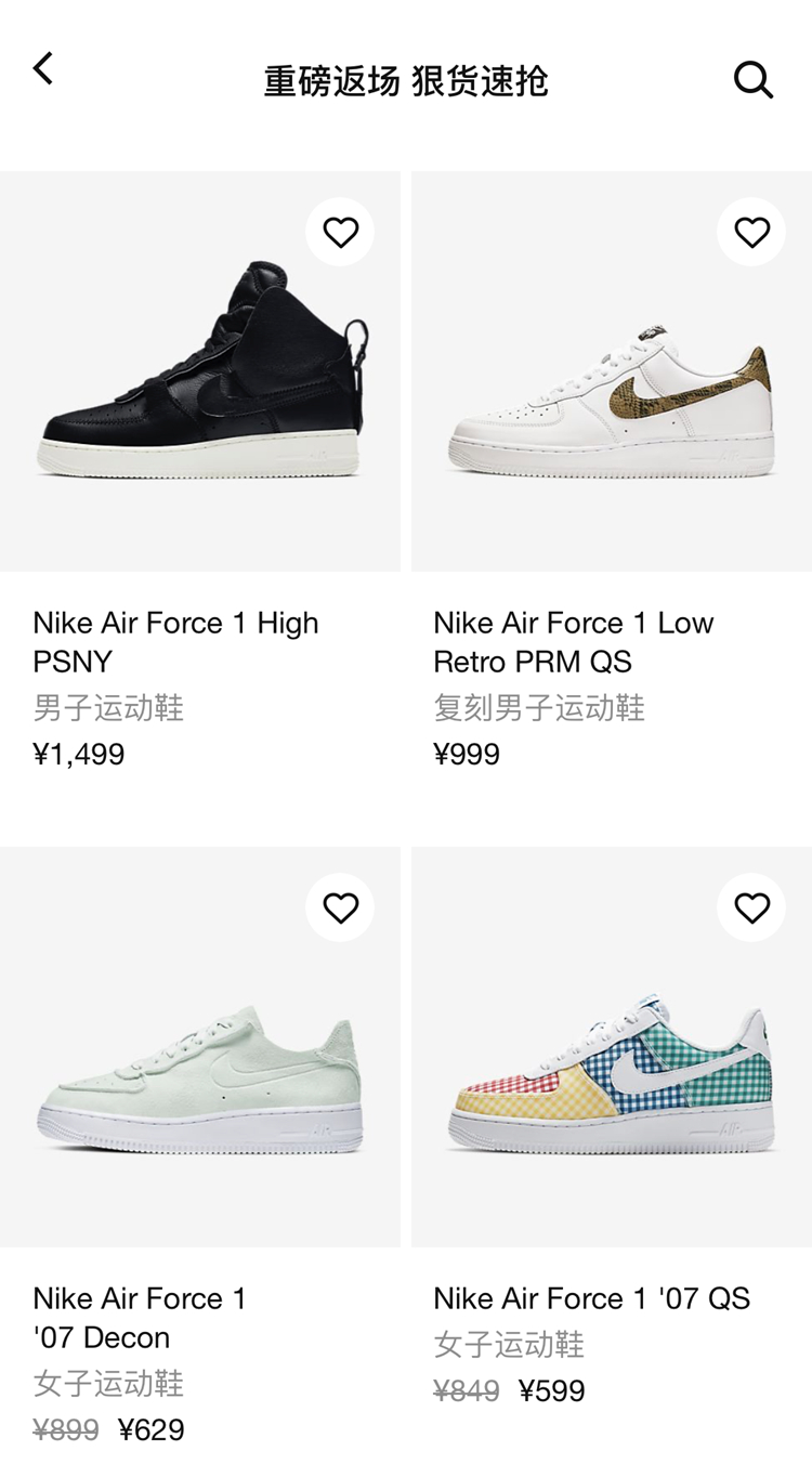 而同样是中午 12 点,Nike APP 同时开启「闪促」活动,更是让粉丝猝不及防!万圣节 Air Force 1、地球日 Air Force 1 以及 ACW 等多双重磅鞋款返场发售!