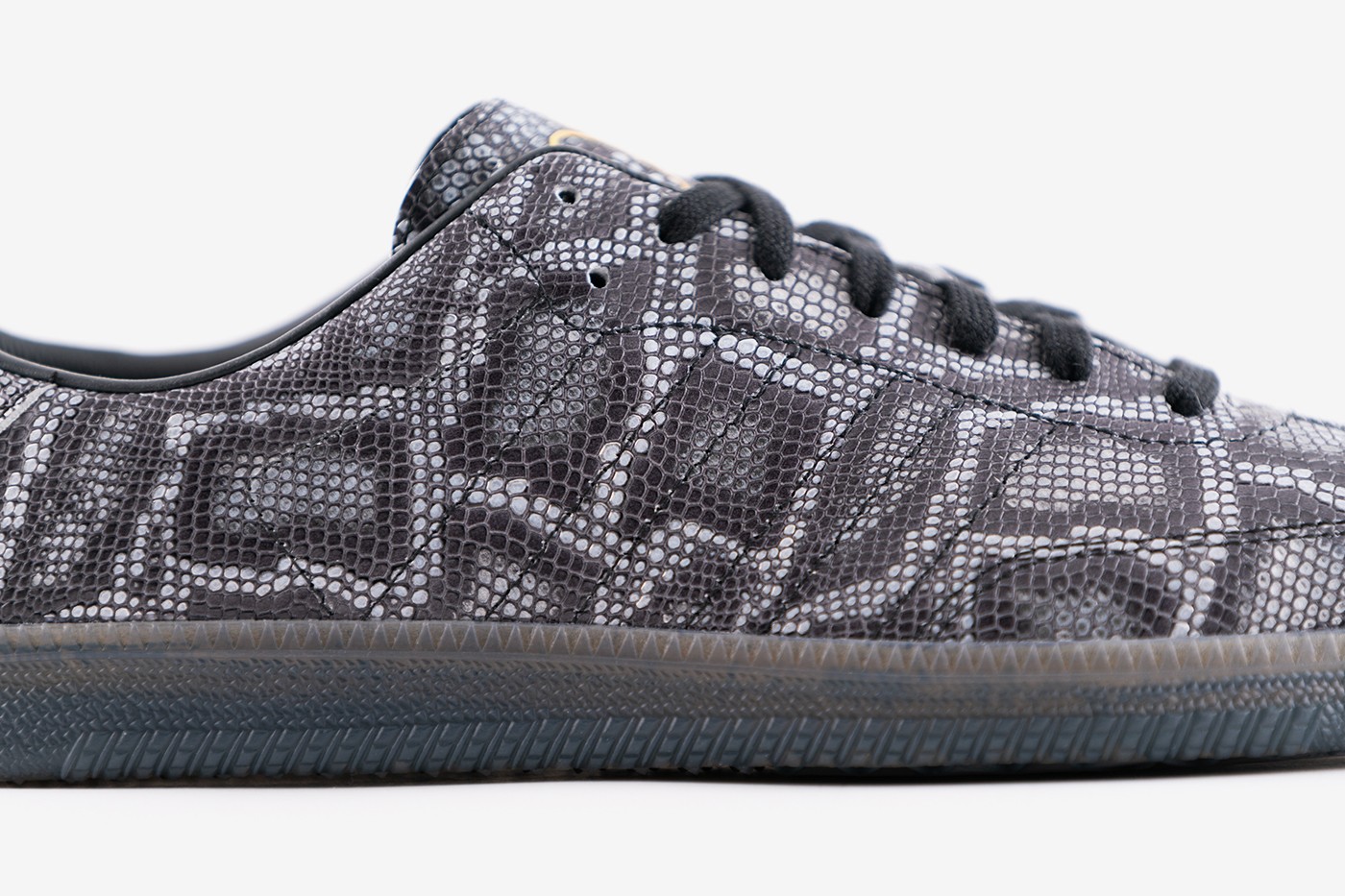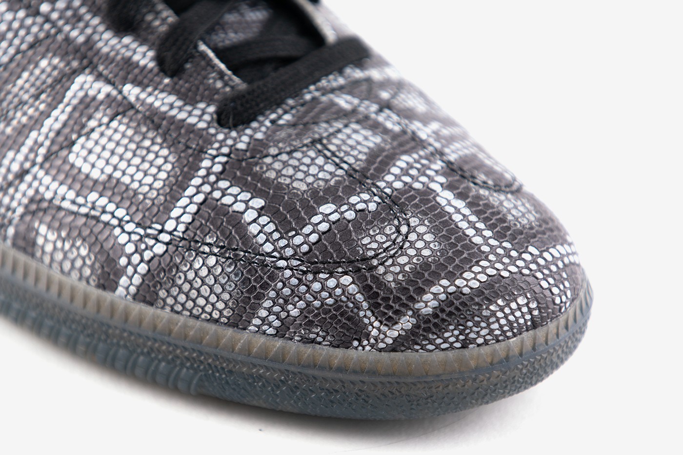 最佳的亮点在于整双鞋均采用深色蟒纹皮革打造,狂野气息尽显无疑。
