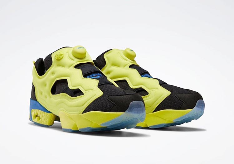 整双鞋采用经典 Instapump Fury 为设计蓝本,鞋身大面积采用黑黄配色装扮,呈现出浓厚复古气质。