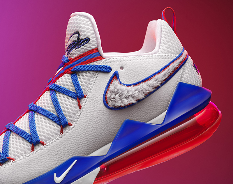 另一双低帮版本 LeBron 17 Low 则以兔八哥及小伙伴组成 “Toon Squad” 球队为灵感,红、蓝撞色妆点细节。