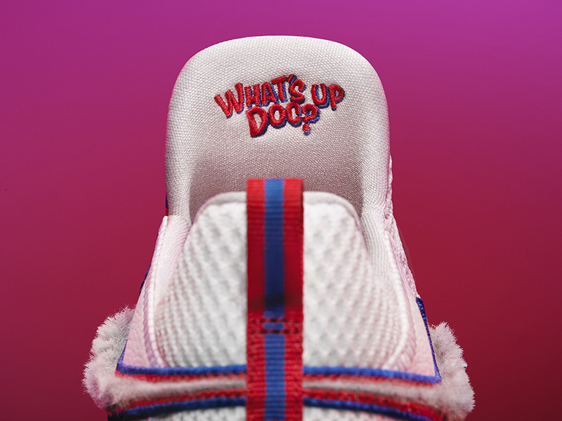 鞋垫与鞋舌都加入电影元素,更特别的是 Swoosh 辅以兔八哥灰色兔毛质感呈现,非常独特。