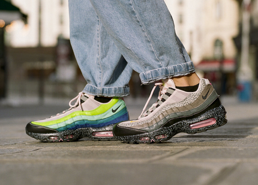 整双鞋在经典 Air Max 95 鞋型基础上,采用类似 What The 的拼接手法,注入 20 种不同的配色细节。