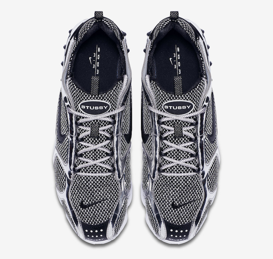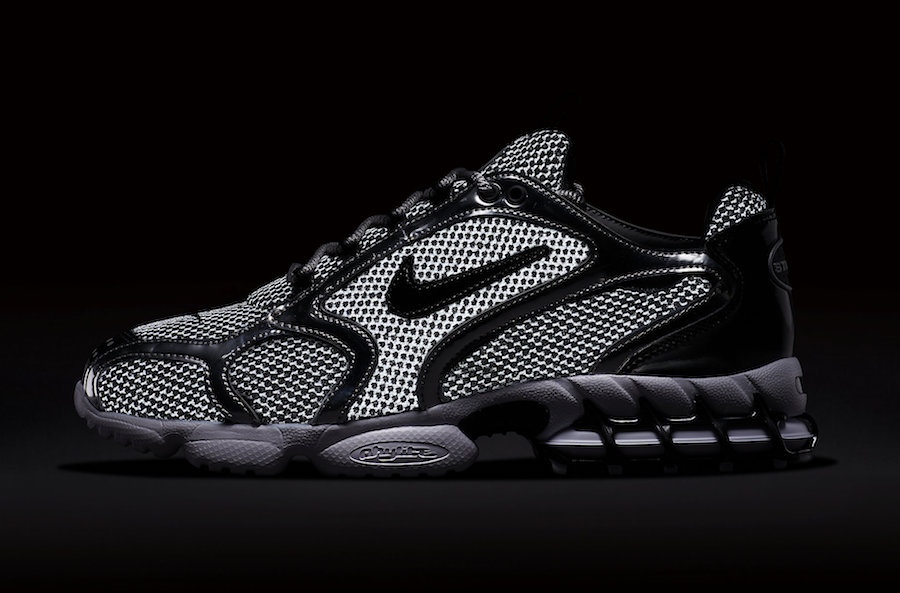此前已经有过多次报道的 Stussy x Nike Air Zoom Spiridon Caged 近日正式发布官图,率先带来的是黑银与乳白配色。