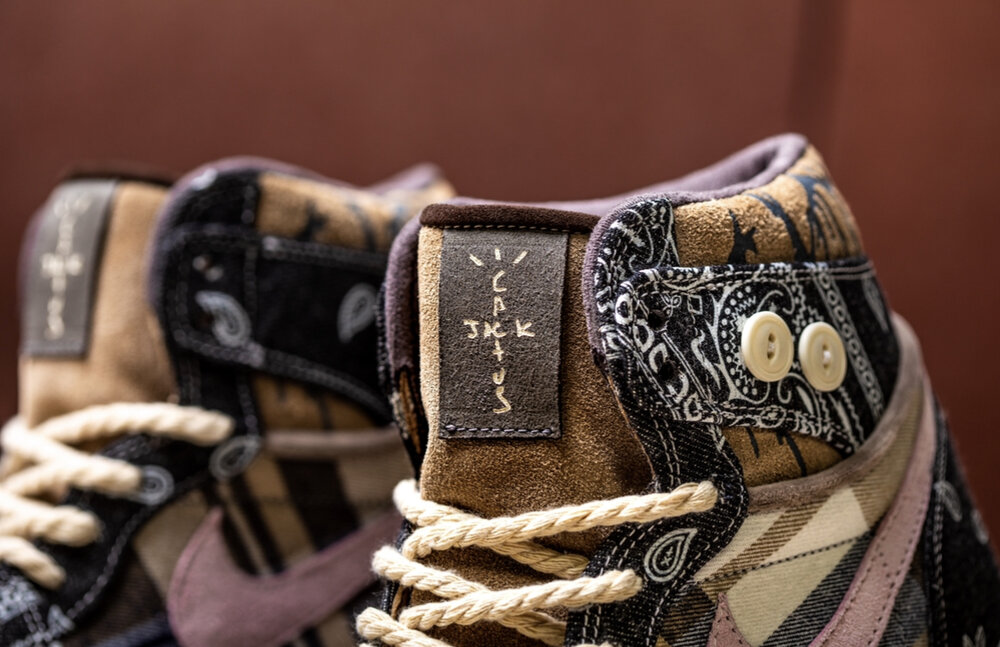 鞋舌还带有 Cactus Jack 厂牌 Logo,并巧妙的以两颗纽扣作为鞋帮装饰,整体设计可谓非常抢眼。