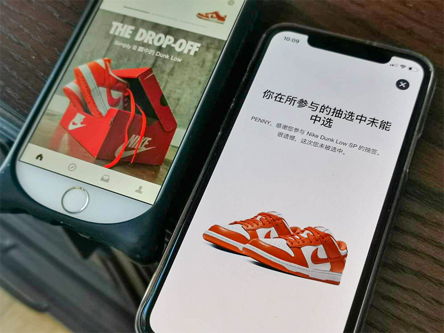 今早 9 点是两双大学配色的 Nike Dunk Low,白橙和白蓝分别呈现了雪城大学和肯塔基大学的经典装扮,OG 气质浓厚,绝对的复古百搭。