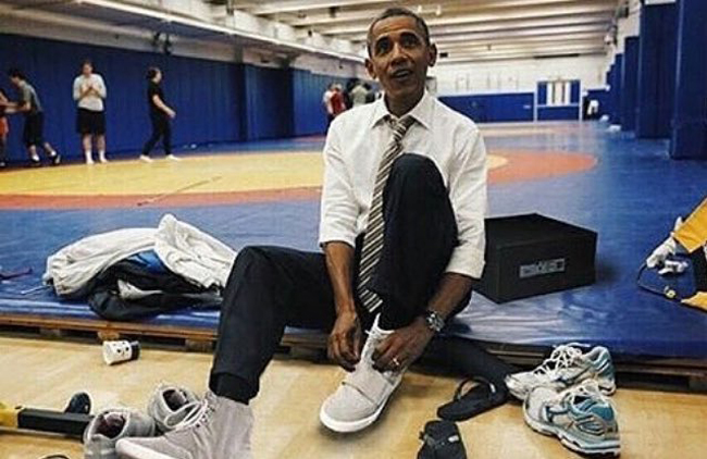 ▼ 网友恶搞奥巴马上脚初代 Yeezy 750 Boost