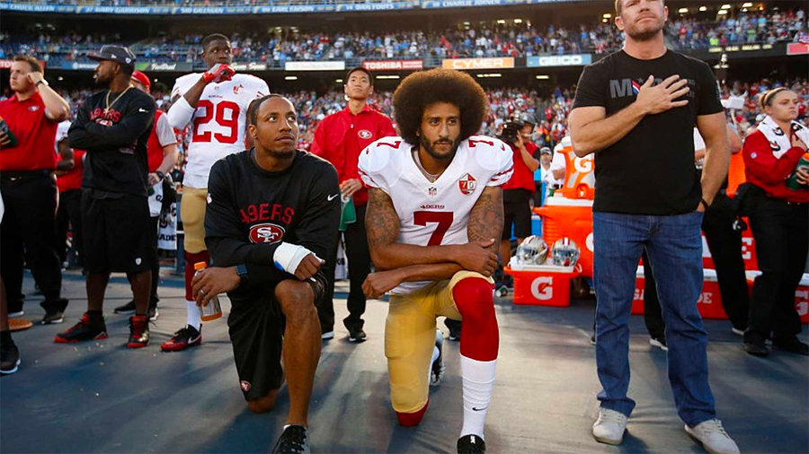 但卡佩尼克本人在美国饱受争议,因为他曾在一场比赛前奏国歌的时候单膝跪地,用他个人的方式抗议针对非洲裔美国人以及其他少数族裔的暴行。