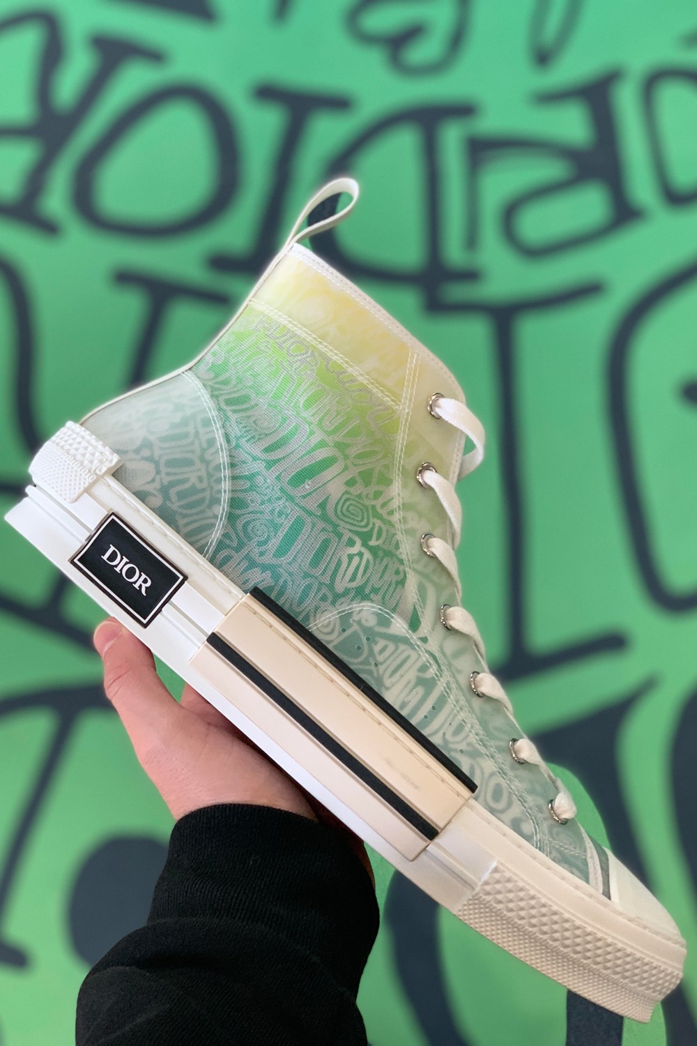 早在去年冬天,网络上就已经浮现了多款带有浓郁 Stussy 雷鬼文字风格设计的 Dior B23 鞋款。