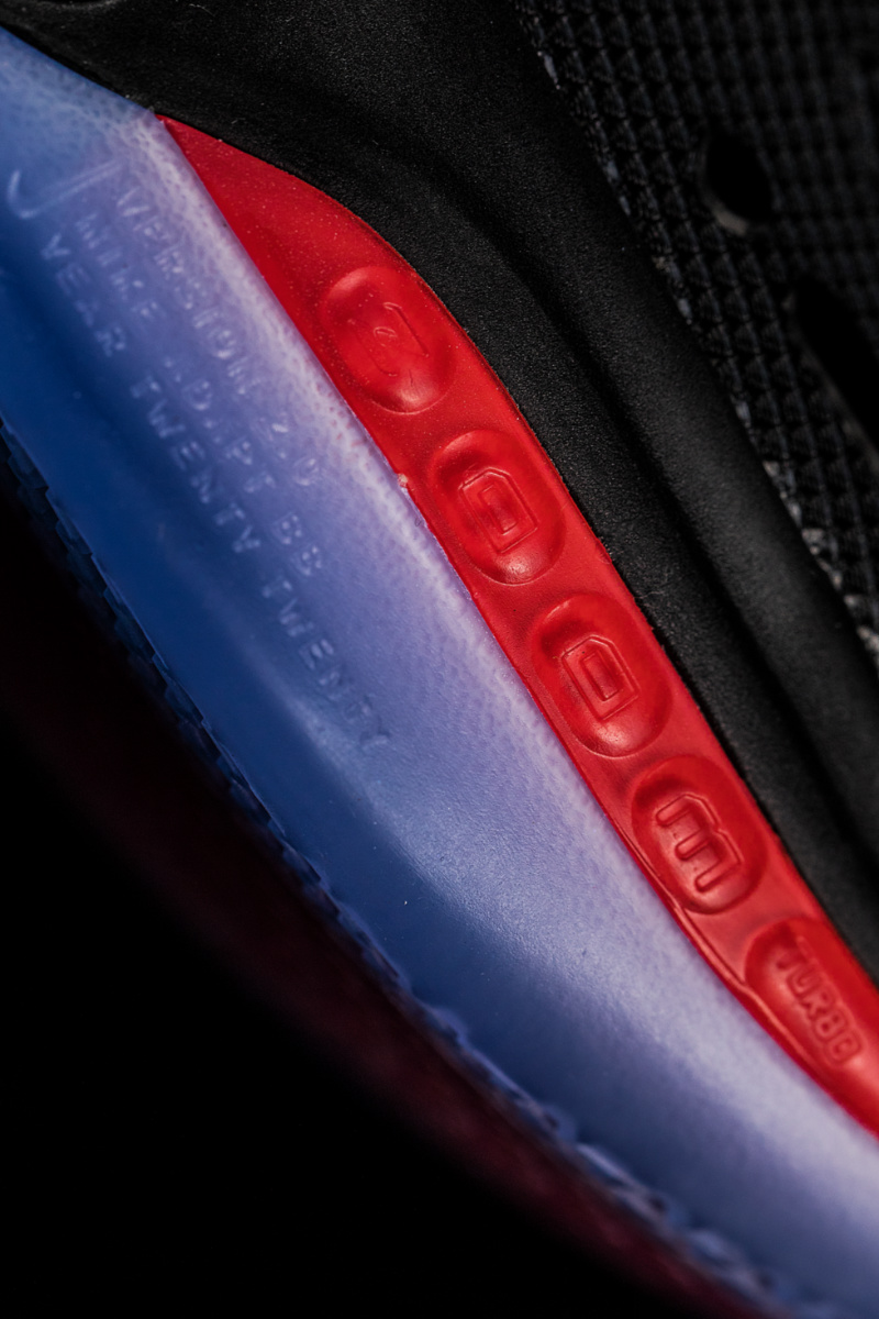 通过在增大体积的 Air Zoom 气垫上增加凹槽纹路,使其可应对各个方向的弯曲,让前掌响应更灵敏,实战脚感进一步提升。