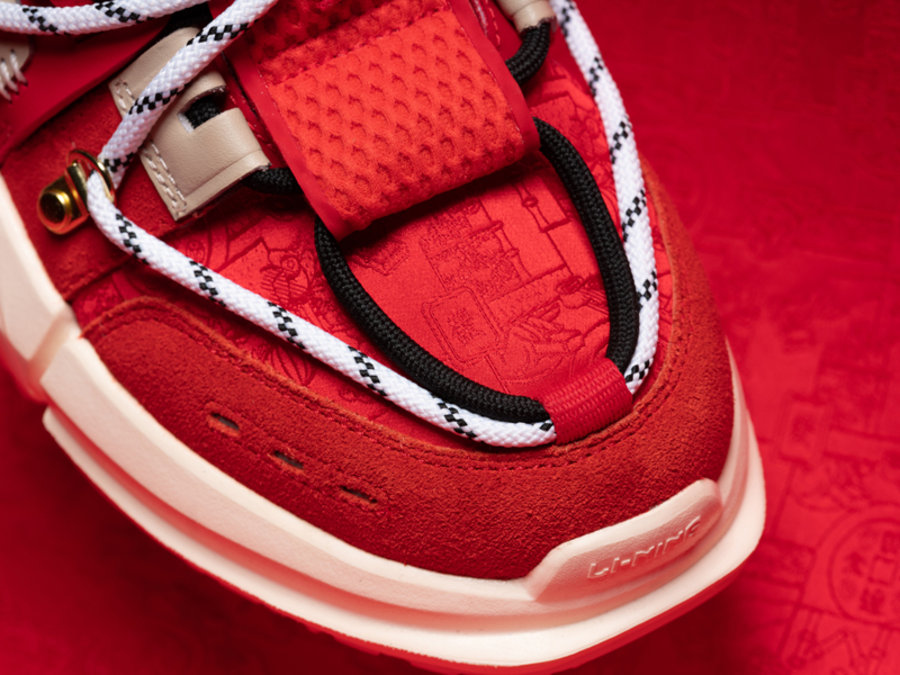 红色版本象征中国,选用中国传统丝绸材质打造,灯笼、麻将等印花注入鞋面纹理。