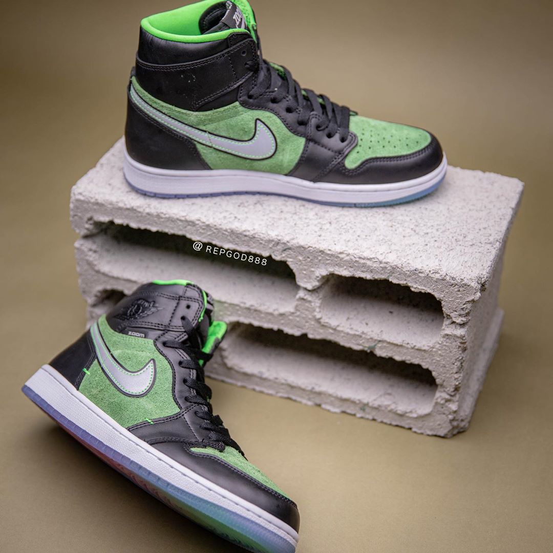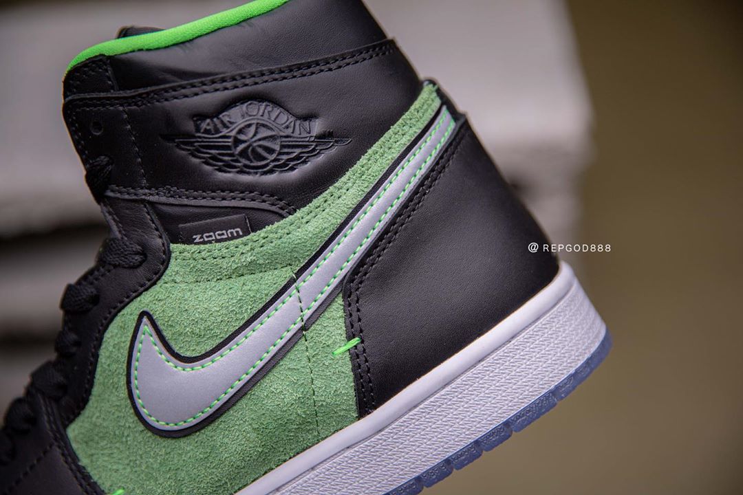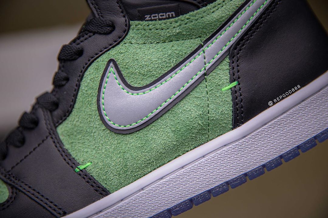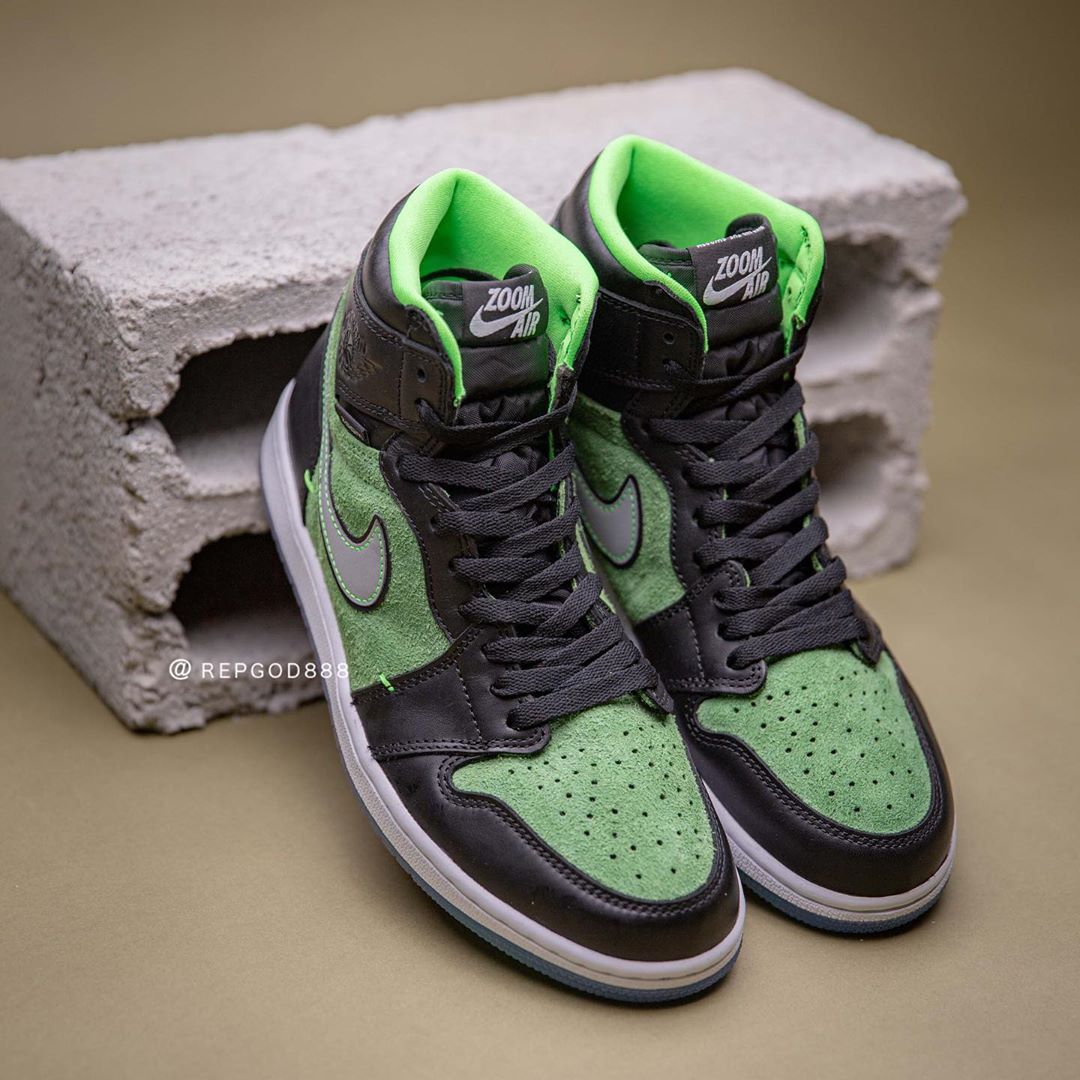 前两天又一双搭载 Zoom 缓震的 Air Jordan 1 High Zoom “Rage Green” 首次曝光,由于照片质量不高导致新配色看起来非常丑。