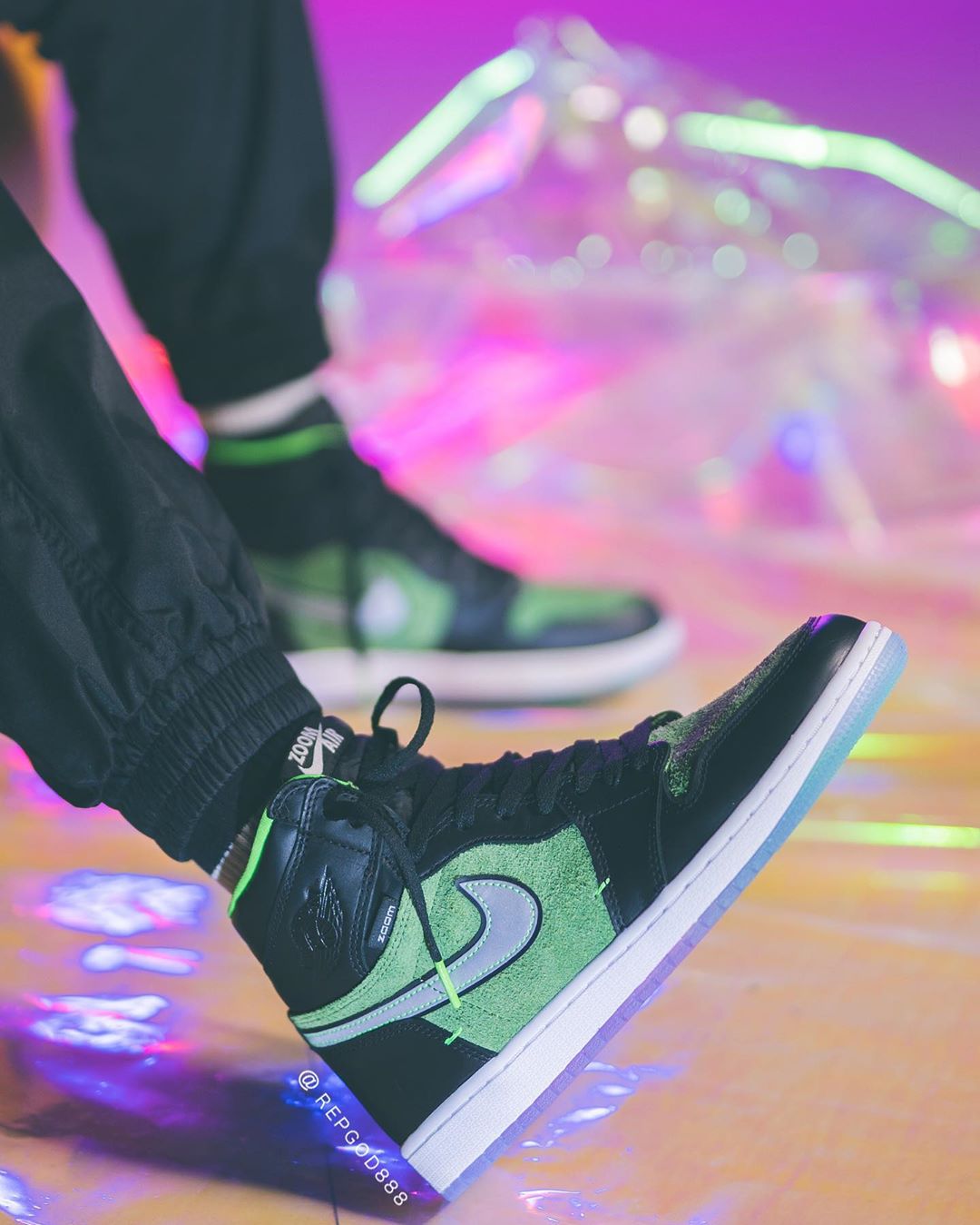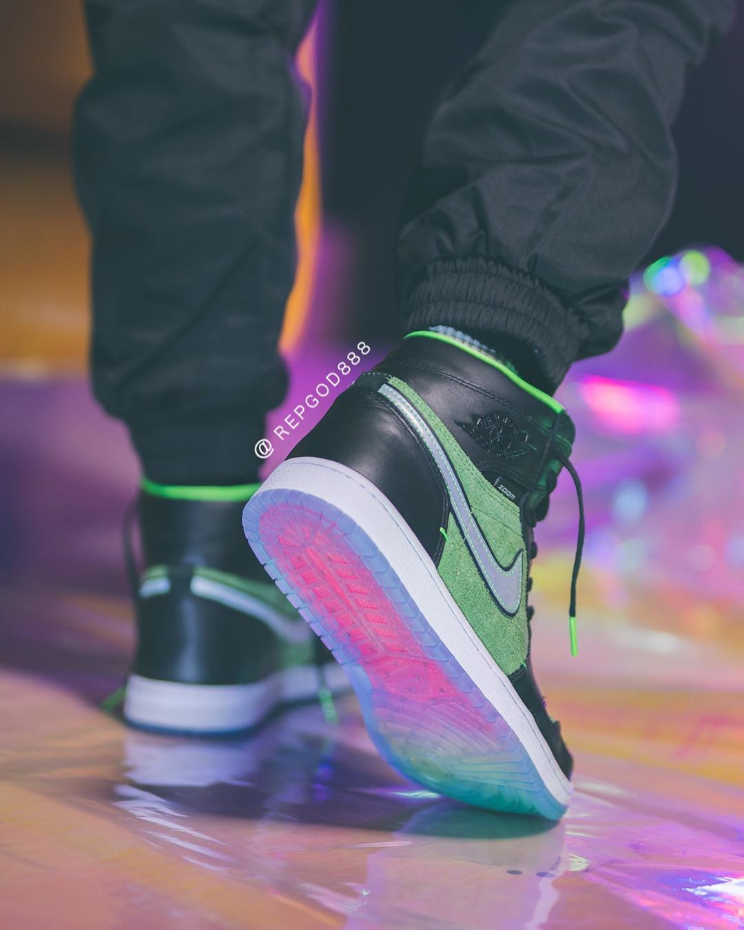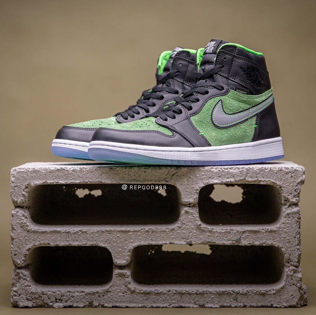 前两天又一双搭载 Zoom 缓震的 Air Jordan 1 High Zoom “Rage Green” 首次曝光,由于照片质量不高导致新配色看起来非常丑。