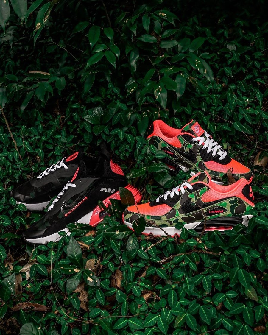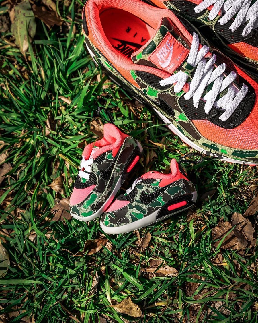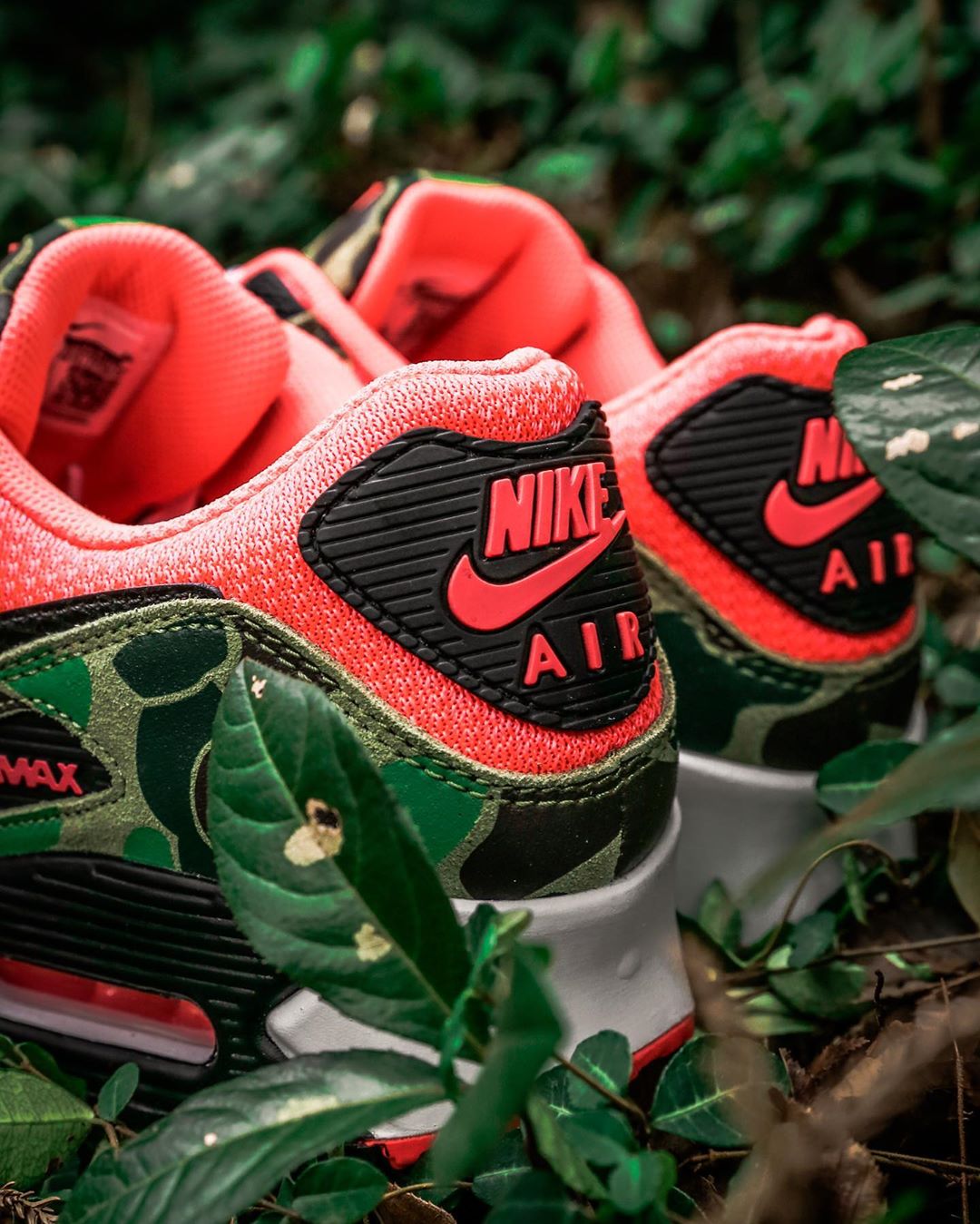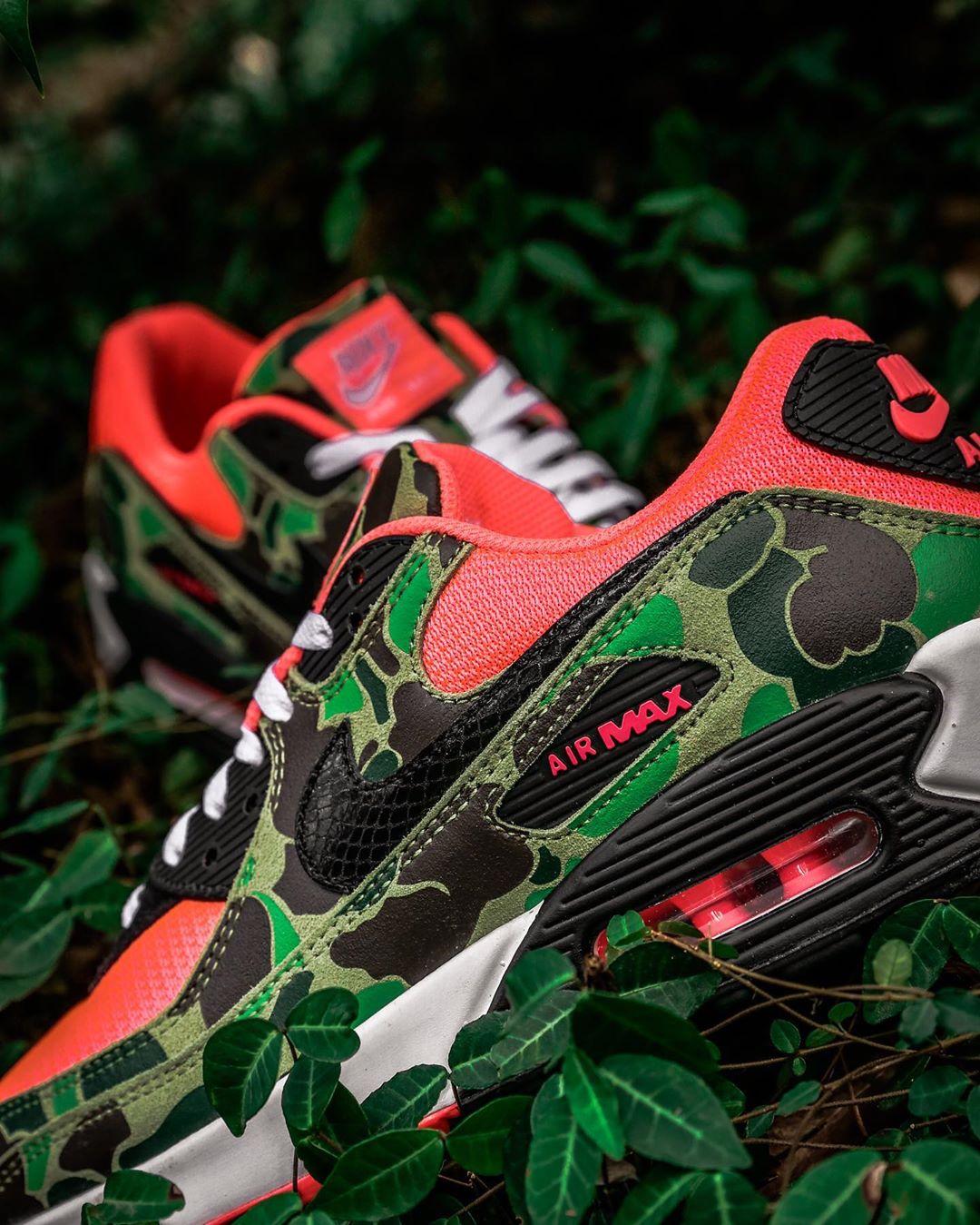 Air Max 90 标志性的 Dunk Camo 图案为主体,搭配红外线色点缀,辨识度极高。