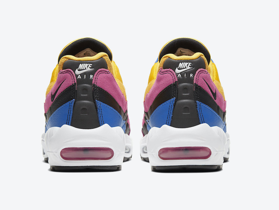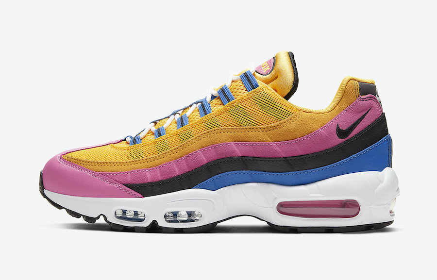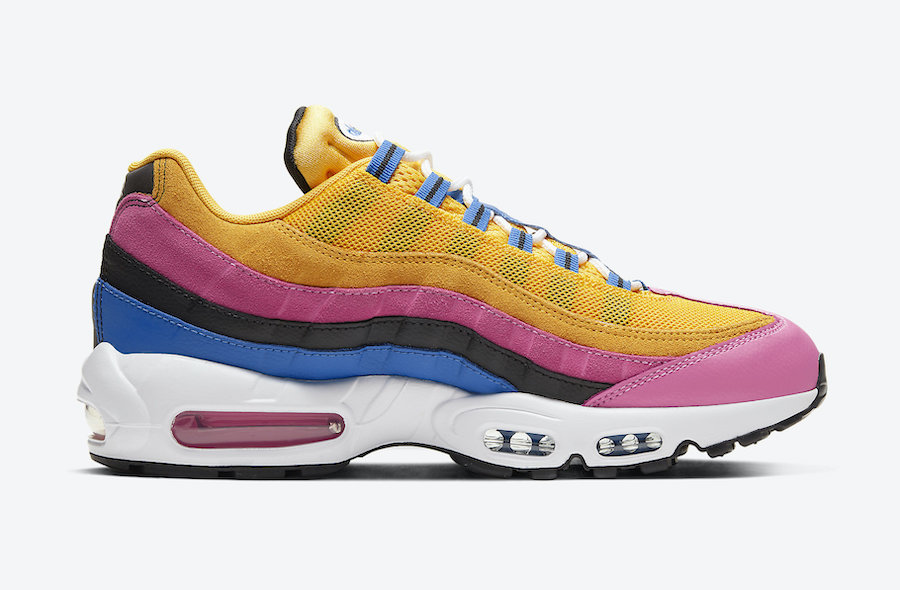 整体造型延续 Air Max 95 的标志性波浪鞋身,黄、粉、黑、蓝等亮眼配色装扮的鞋身,尽显丰富层次感!