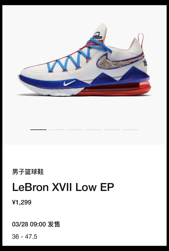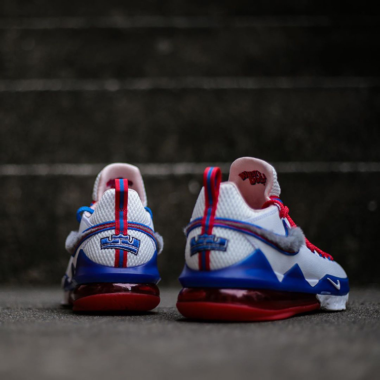 科技配置上 LeBron 17 Low 延续后跟大气垫设计,前掌则选用 React 缓震科技,相对脚感更为柔软。