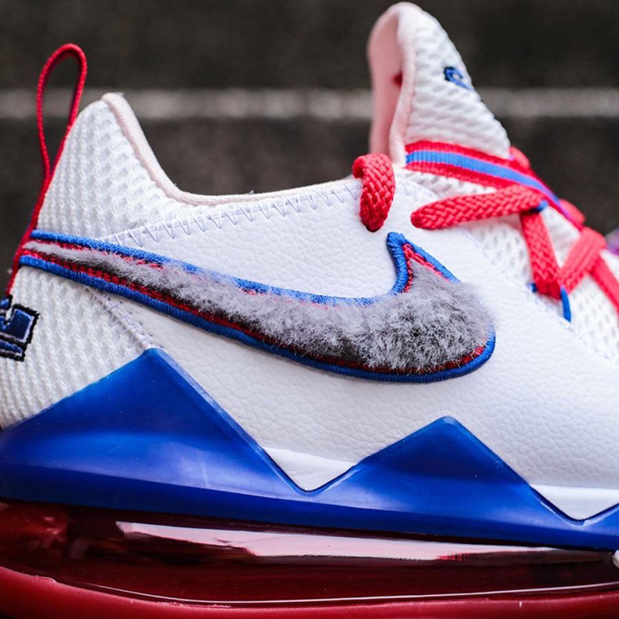在比赛中频繁上脚的 Nike LeBron 17 Low “Tune Squad”以詹姆斯出演的《空中大灌篮 2》电影为主题,将兔八哥领衔的主角团 “Toon Squad” 球队主色点缀鞋身细节。