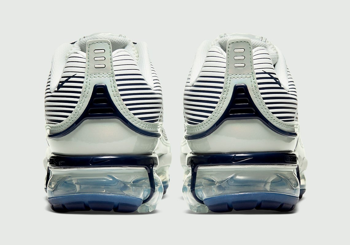 鞋面条纹采用白色和海军蓝装扮,鞋头部分则采用更浅的蓝色,带来丰富的层次感,视觉效果炫目。