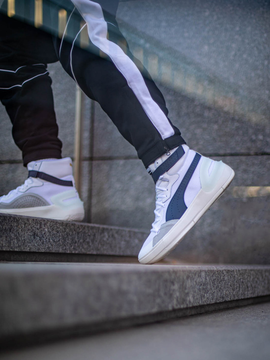 融合实战鞋与潮流质感的设计语言,呈现在复古韵味十足的 PUMA Sky Modern 上,可谓是颠覆常规篮球鞋的前卫代表。