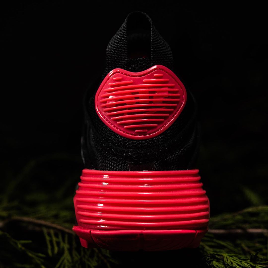 整双鞋看上去似乎是以黑红色为主调,但在黑色半透明材质的鞋面中暗藏迷彩元素,整体设计与视觉效果都颇具特色。