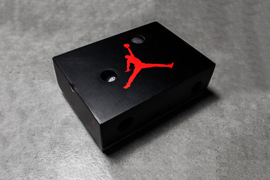 圆孔遍布鞋盒四周,透过空洞可以直接看到内部的衬纸和球鞋。