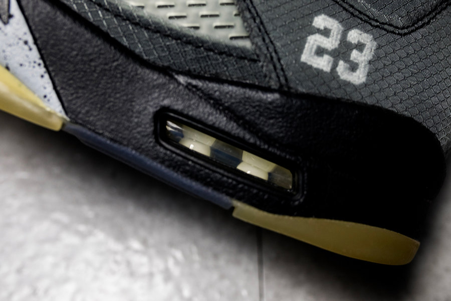配色方案保留了黑银 Air Jordan 5 的格调,整体以做旧效果处理。