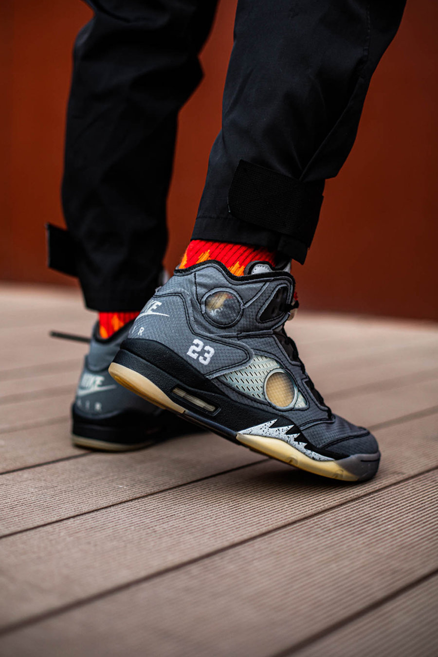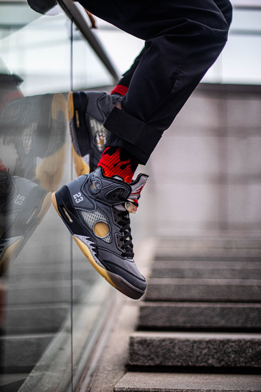 作为今年第一双 OFF-WHITE 联名,以周年鞋款 Air Jordan 5 为蓝本设计,让不少鞋迷眼前一亮。