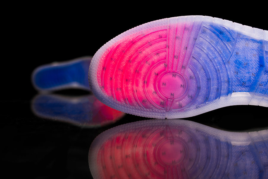 更特别的是半透明渐变的水晶外底,有着与冷感十足的鞋身反差对比强烈的热情气质。