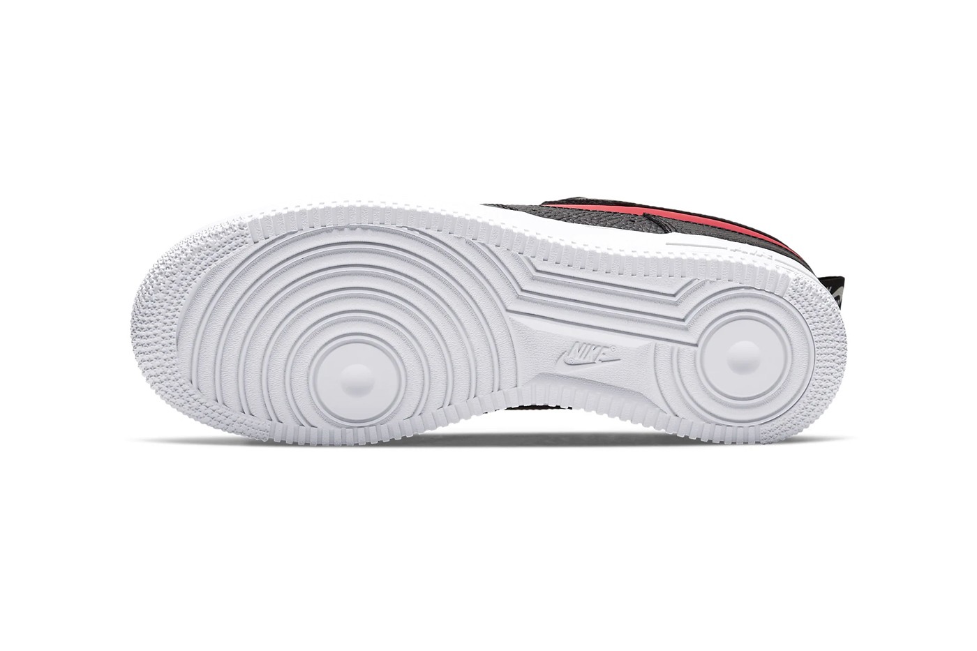 分别以黑、白两色呈现,侧身点缀红色 Swoosh Logo,鞋头点缀红色 Nike Air Force 1 的标签,整体样式简洁高级。
