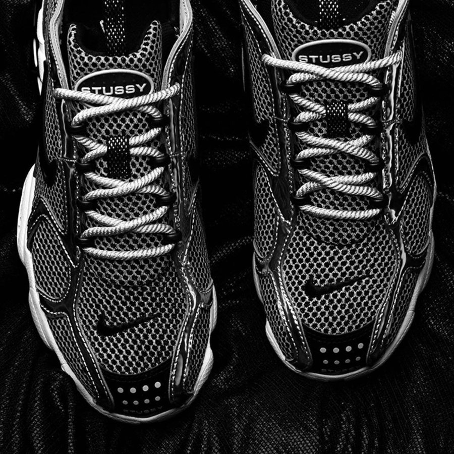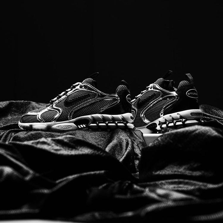 此次联名最大亮点当属两双联名鞋款,以复古鞋款 Air Zoom Spiridon Caged 2 为蓝本打造,首先带来黑银与卡其两款配色。