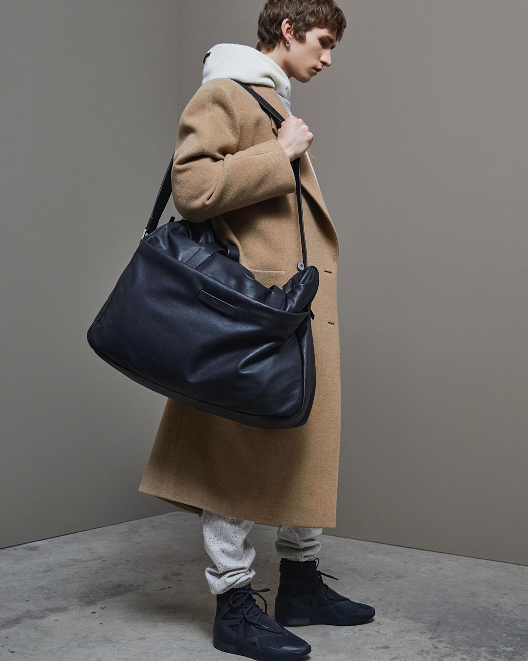 在上月 Ermenegildo Zegna x Fear of God 新联名型录中,模特便上脚了这双鞋搭配长风衣,上身效果可谓非常高级。