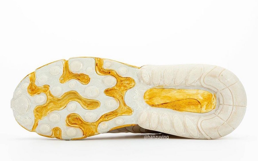 不同于此前 Air Jordan 1、Air Jordan 4 等联名,此次以热度并不算高的 Air Max 270 React 鞋型为蓝本。