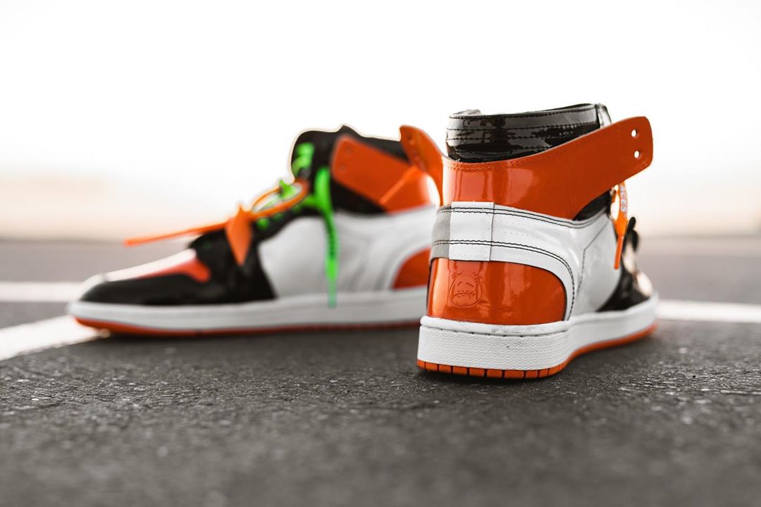 这双鞋是由定制团队 @chptr.3 打造,使用漆皮材质打造鞋面,以 Air Jordan 1 经典配色扣碎篮板为主题。