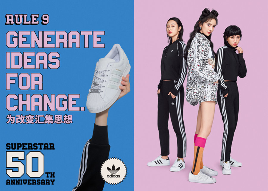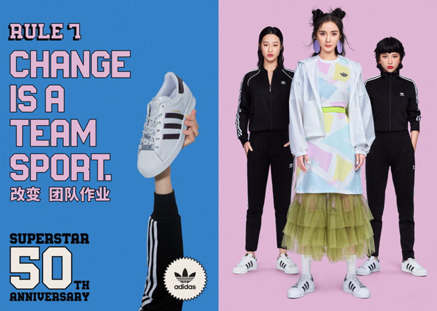 近日,adidas 召集旗下艺人易烊千玺、陈奕迅、杨幂、Angelababy和王嘉尔化身复古海报封面人物带来多款全新造型 adidas Superstar!