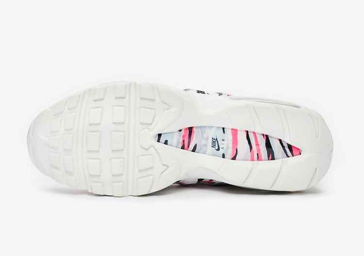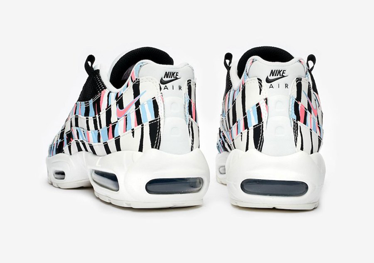 整双鞋在经典 Air Max 95 的鞋身上采用黑色、白色、蓝色以及粉色覆盖,带来极为亮眼的视觉效果。