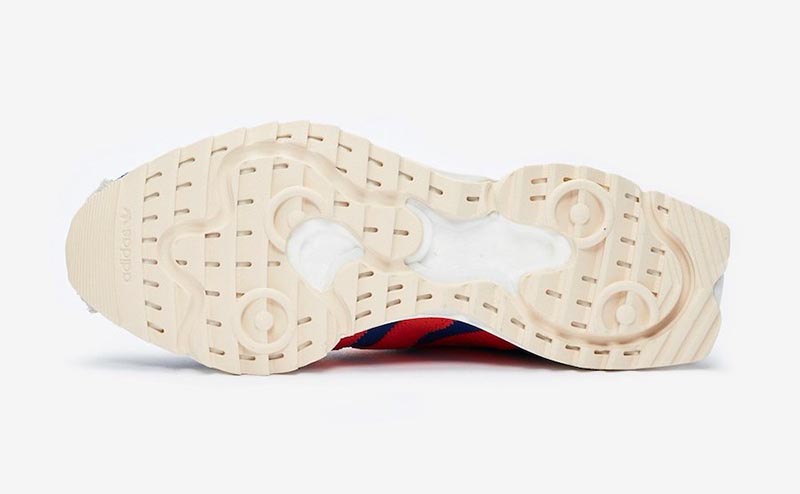 最大亮点在于,中底内嵌覆盖足底的 Boost 缓震科技,并在前掌内侧与后跟外侧裸露,颇具当年 NMD 的设计风范。