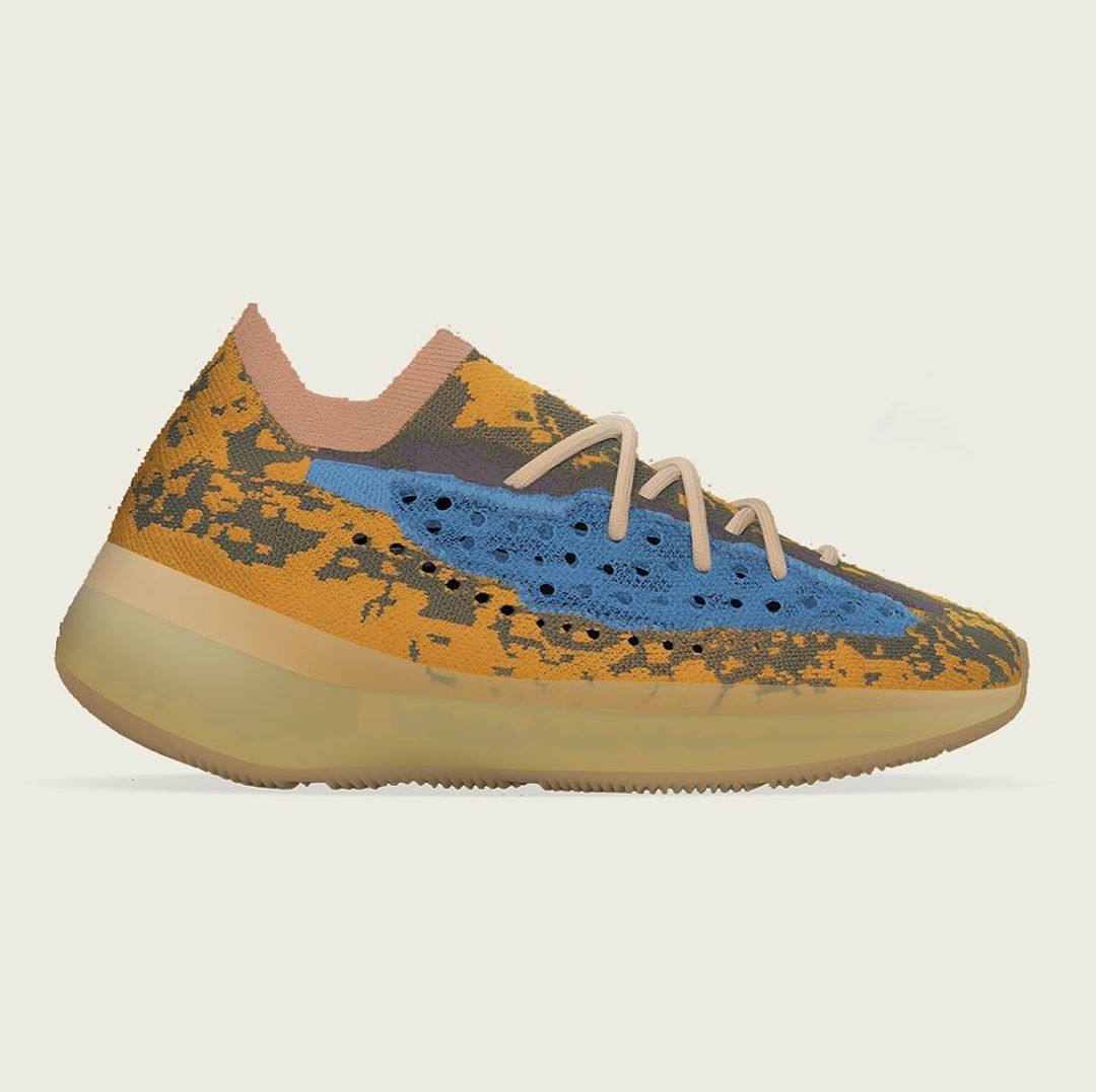 沙漠迷彩装扮的 Yeezy 380 辅以蓝色侧透效果点缀,吸睛指数爆表的造型,能不能在夏季迎来真香?