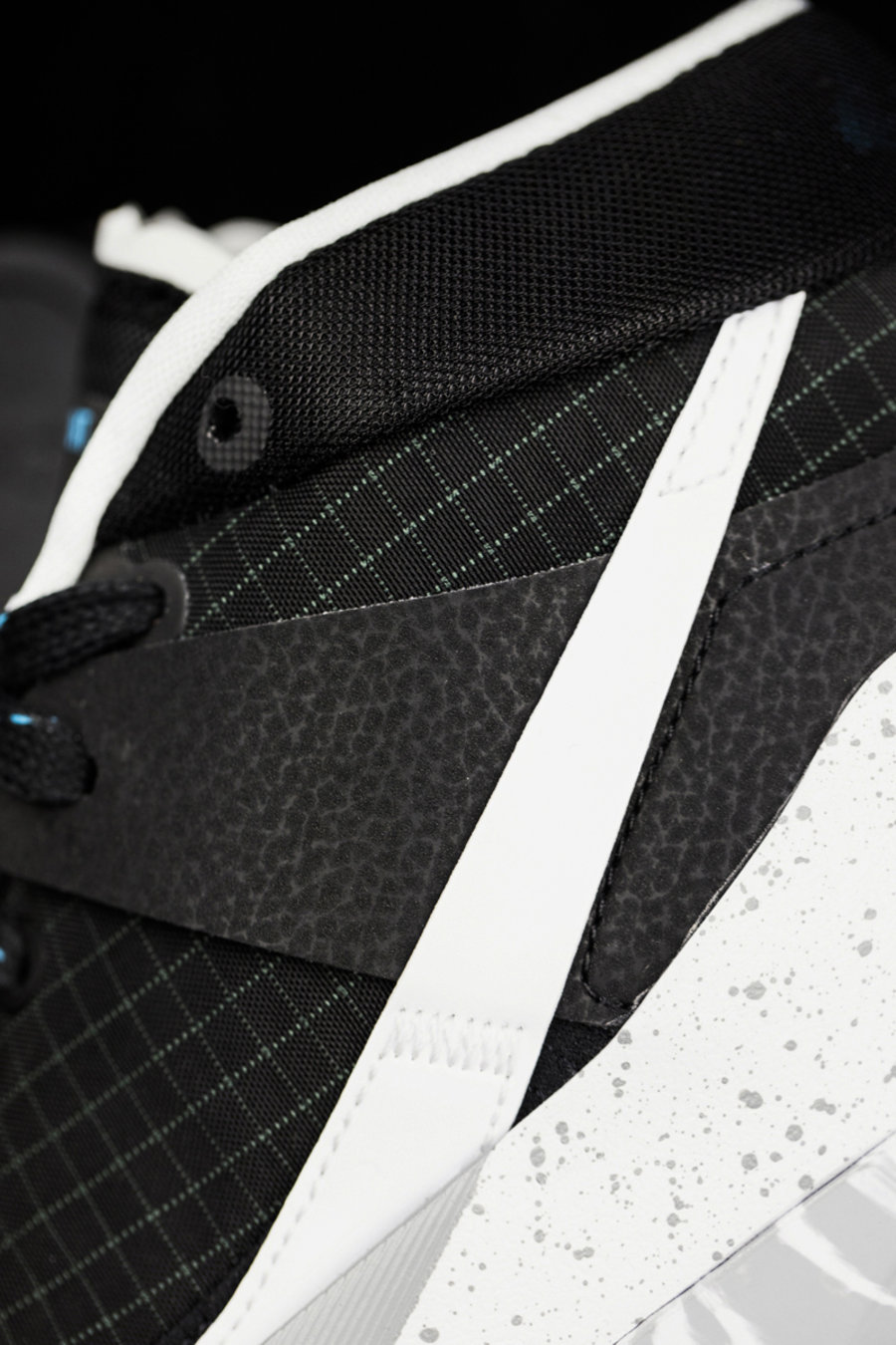整体的用料都更加简洁实用,虽然鞋面依然是四向飞线打造,但结构隐藏在内部,外表类似 Element 55 的网格织物。