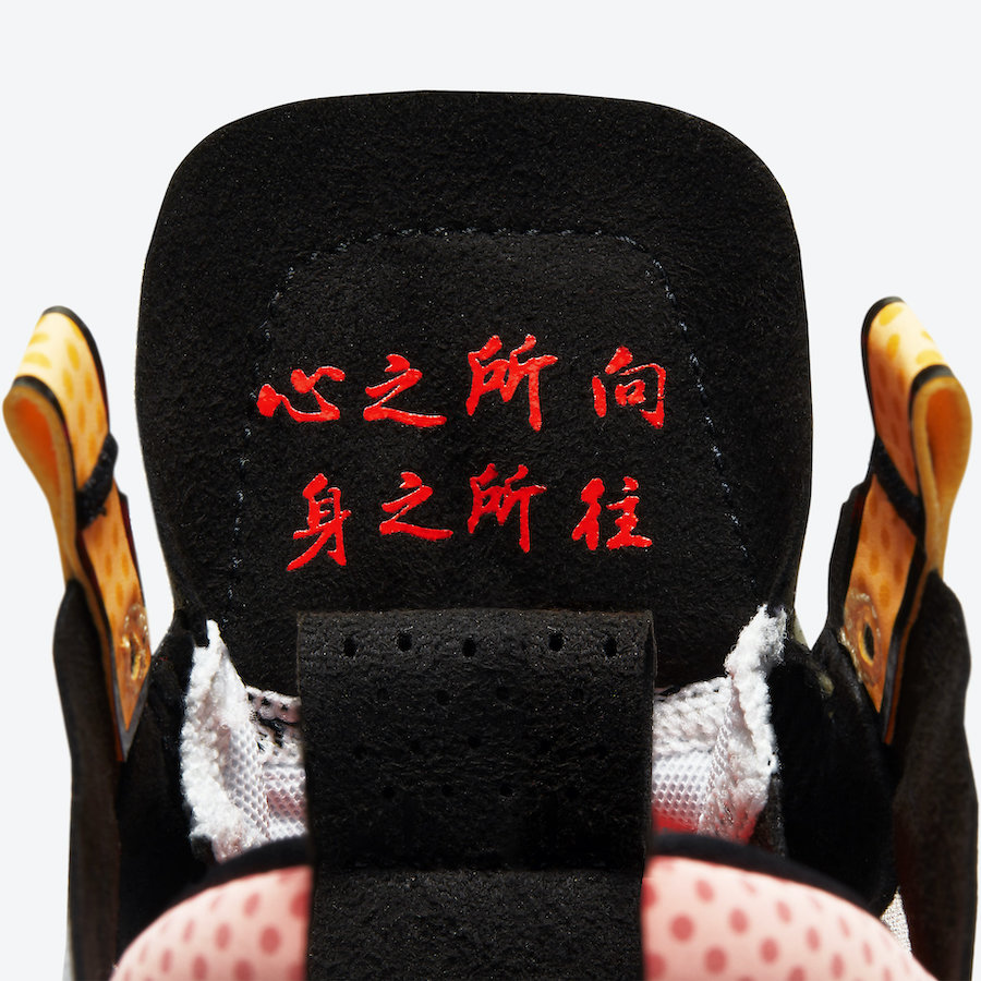 这双 Air Jordan 34 Low 郭艾伦 PE 依然继承了「6」字标志和 “心之所向身之所往” 的汉字细节,配色方面则颇具新意。