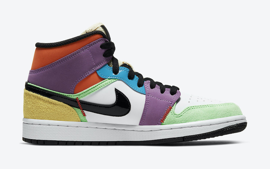 今年年初曝光的一双全新 Air Jordan 1 Mid “Multicolor”,在色彩拼接的风格上与 “大金表” 有异曲同工之处,近日终于有正式官图释出。