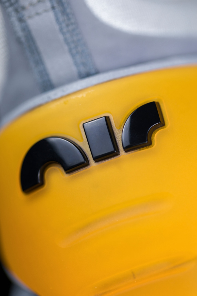 整体配色也采用浅灰为主调搭配白色 Nike Swoosh,鞋舌处四条绑带及泼墨中底,全都是 Nike MAG 的标志性细节。