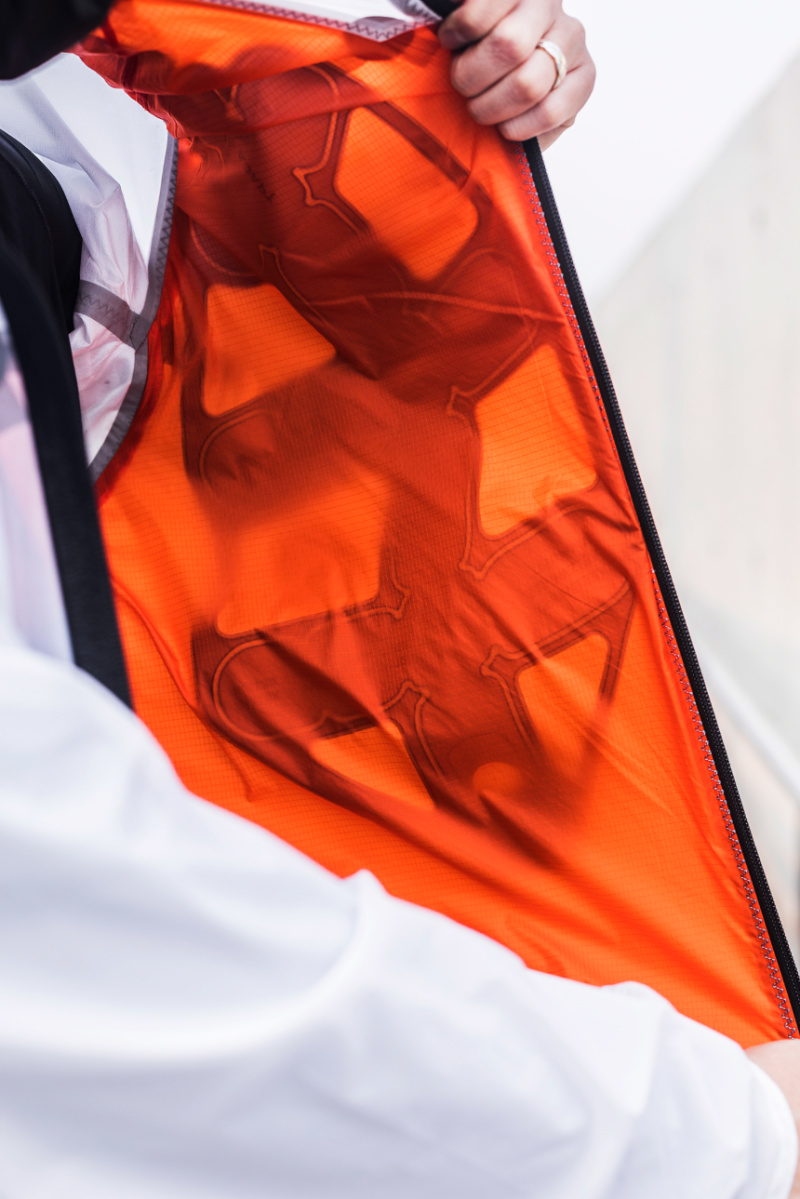 蓝色气囊还可通过内衬特定位置取出,使其成为更轻薄的蝉翼外套,日常清洗也非常方便。