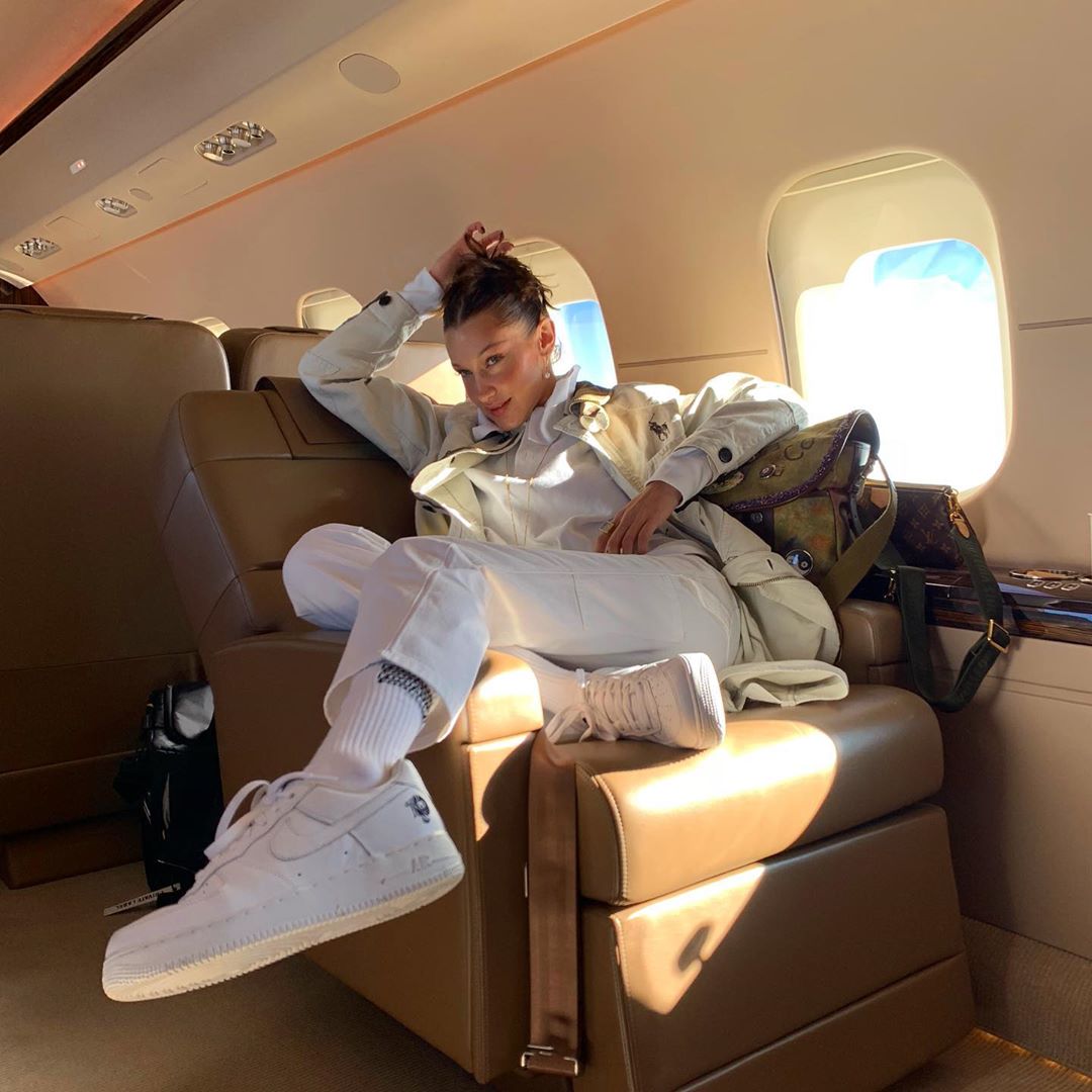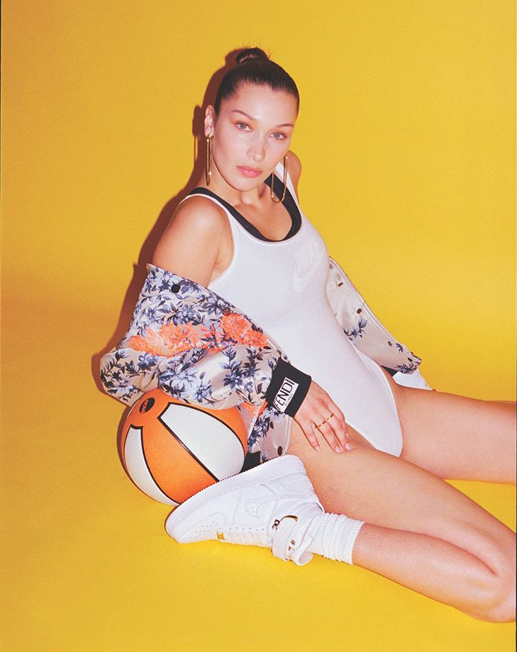 当时 Nike 就邀请了 Bella Hadid 演绎这个最重量级联名企划,把脚下的一双双超人气联名 Air Force 1 传出了不同的风格。