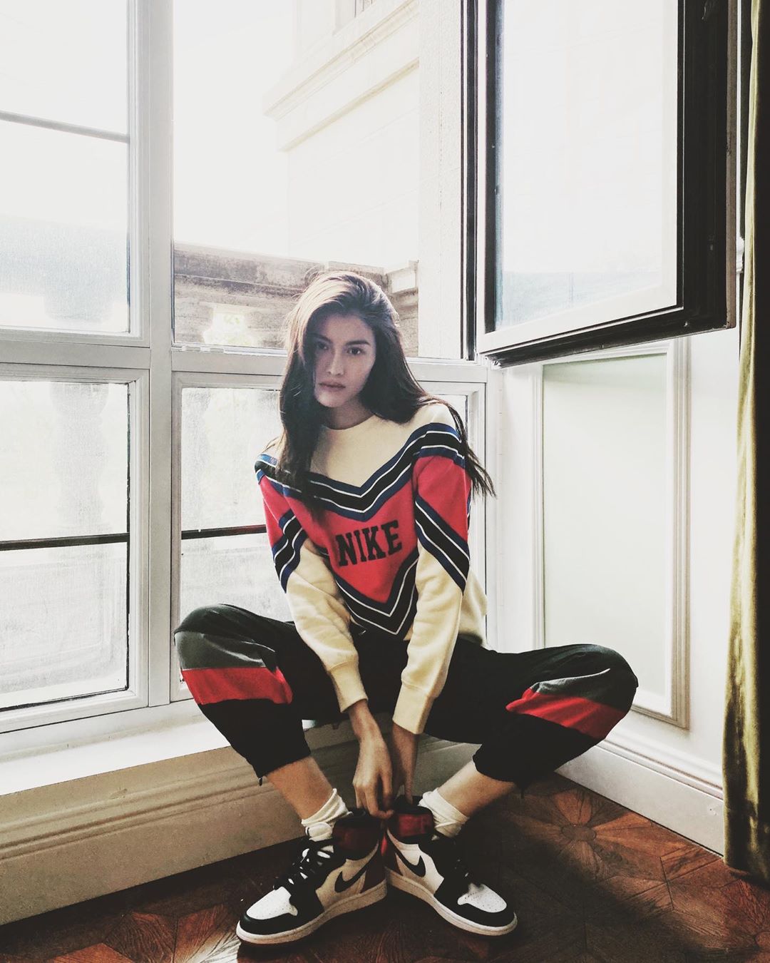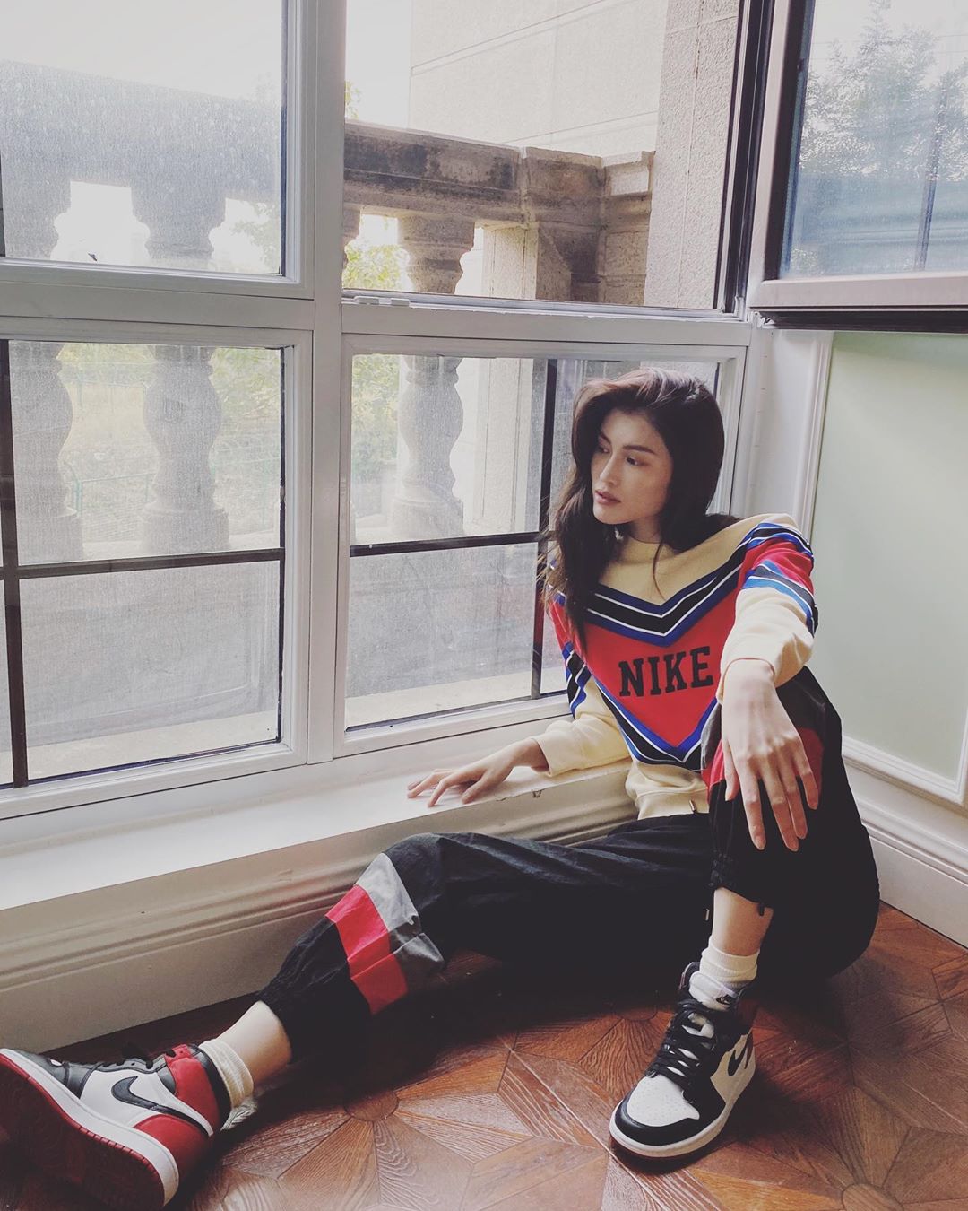 印象中她日常穿搭只会走时尚路线,其实平时也会穿一些球鞋出镜。