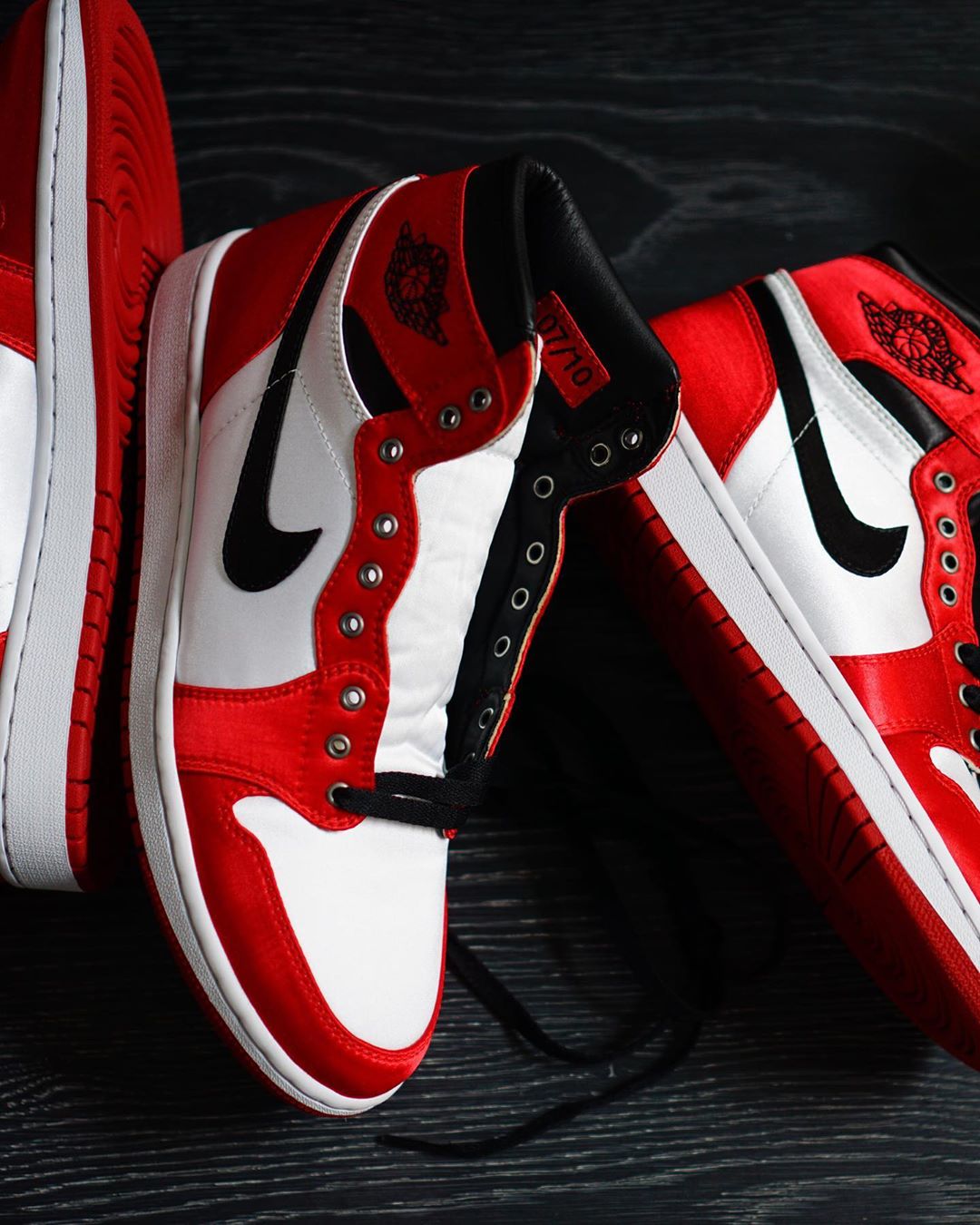 丝绸芝加哥 Air Jordan 1 承袭了经典构色方案,周身覆盖细腻丝绸鞋面。