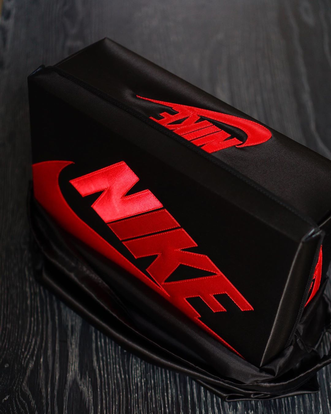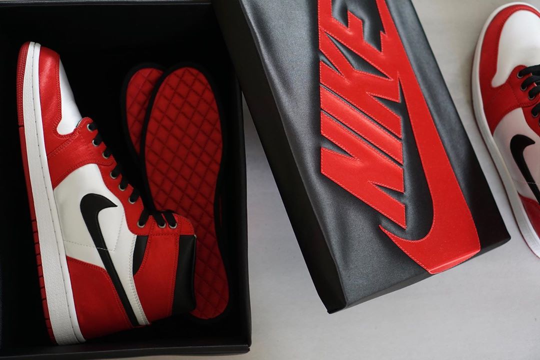 其中鞋子为丝绸芝加哥 Air Jordan 1,鞋盒则为丝绸黑红鞋盒,还附带一个丝绸手提袋!