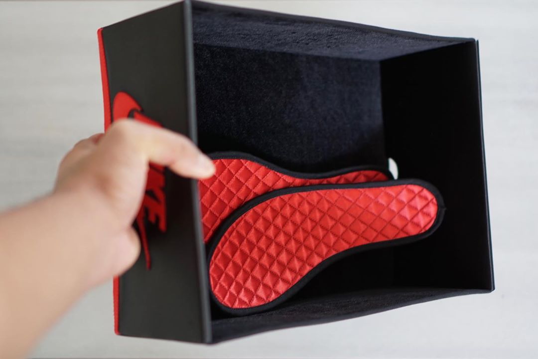 而丝绸鞋盒更是少有的定制款式,经典黑红 Nike Swoosh 样式,以平滑的丝绸包边打造,手感、颜值都可谓是难得一见,收藏或送人都很有牌面。