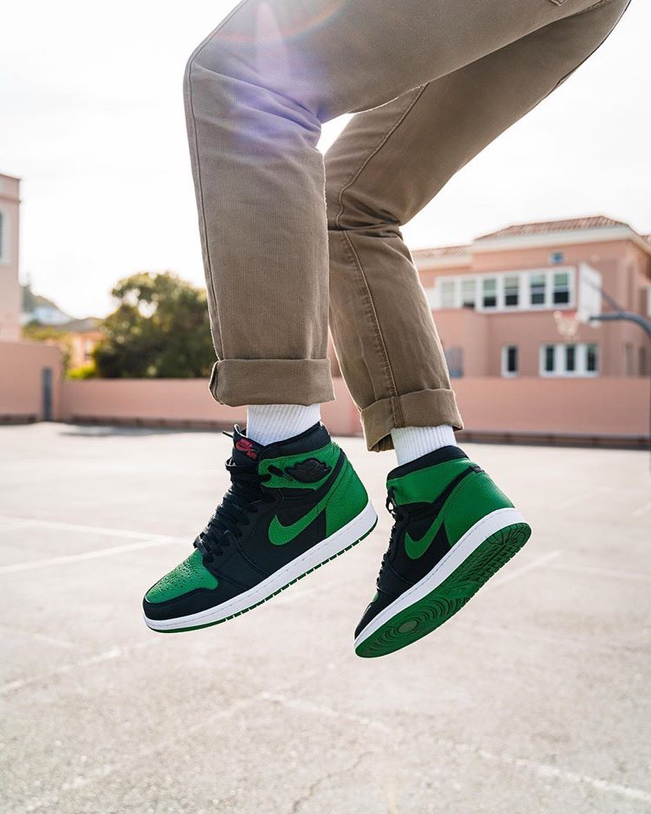 以最经典元年黑红 Air Jordan 1 的配色为原型,将红色替换为绿色带来全新视觉感受,上月发售的这双新品可谓人气十足,